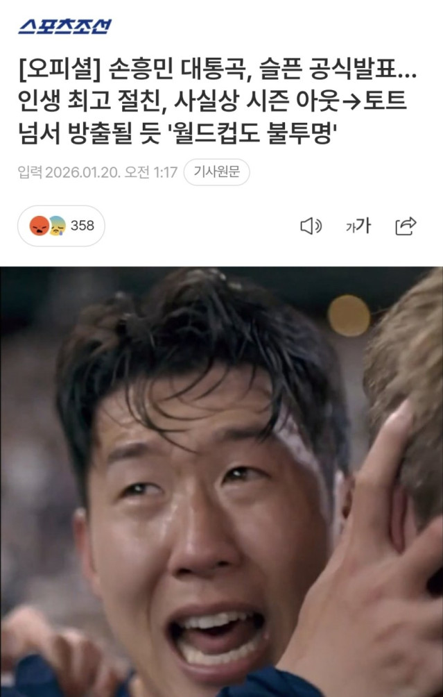 제목과 사진만 보면 손흥민이 무슨 큰일이 난것처럼