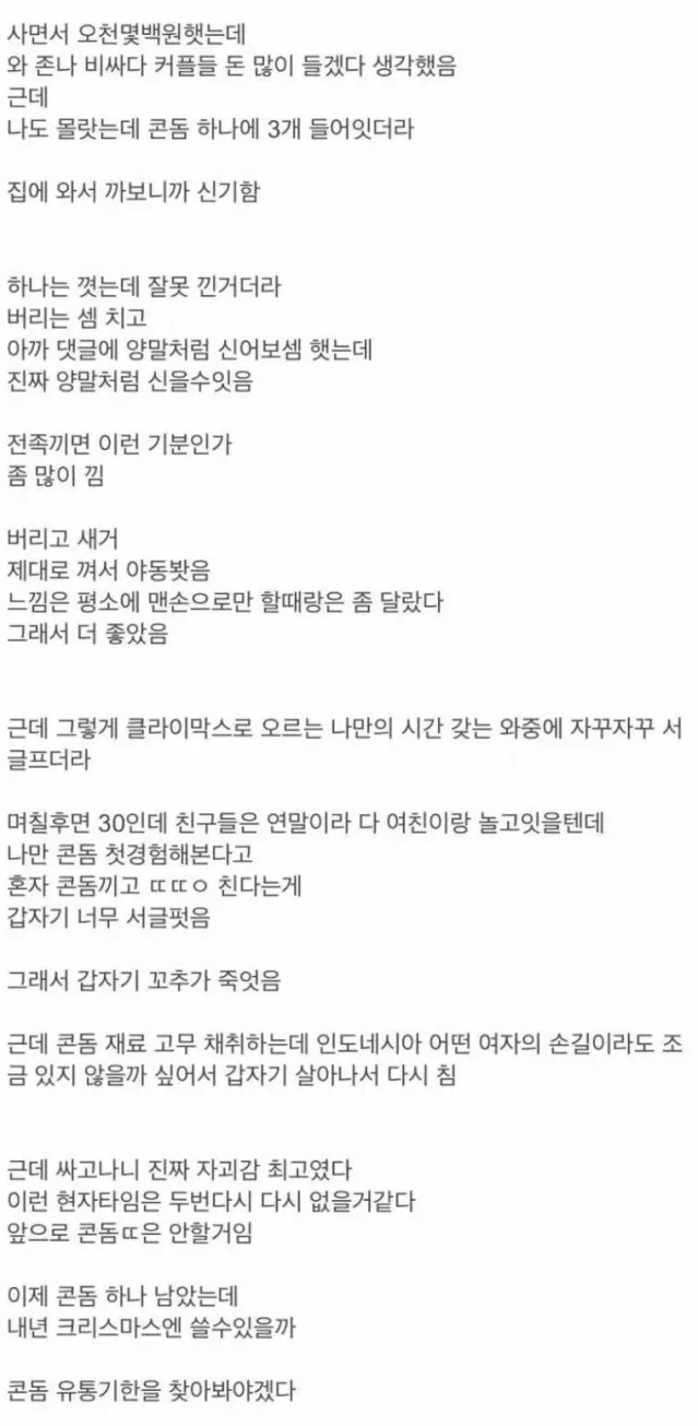 나이 30에 콘돔을 처음 써본 남자..