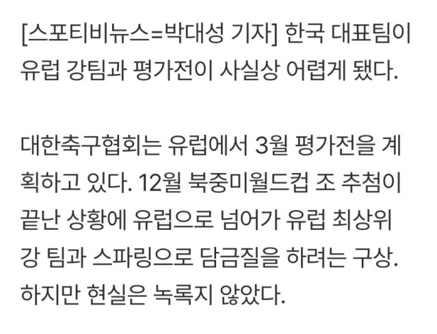 한국 축구, 평가전 유럽 강팀 다 놓쳤다…독일,스위스도 무산.jpg
