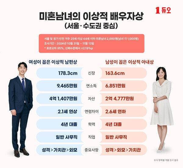 미혼남녀가 뽑은 이상적인 배우자 스펙..JPG