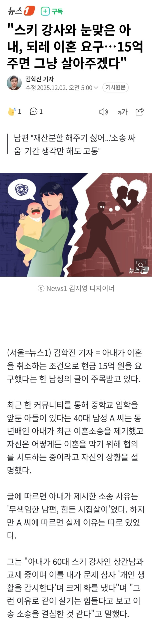 "스키 강사와 눈맞은 아내, 이혼 요구…15억 주면 그냥 살아주겠다".jpg