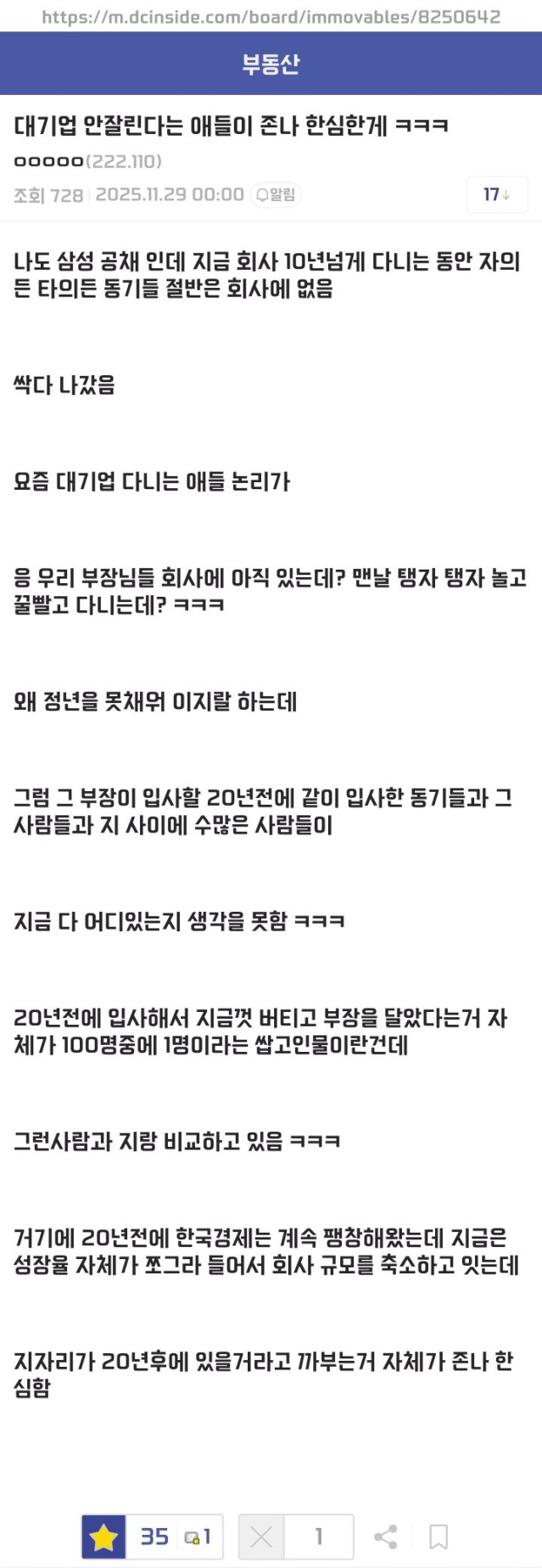 대기업 안잘린다고 생각하는 애들이 존나 한심함...jpg
