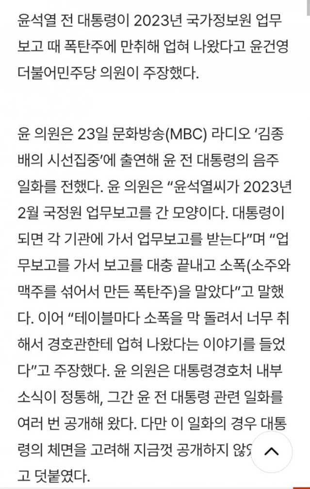 윤석열 폭탄주,국정원 업무보고 경호원 업고 나와...JPG