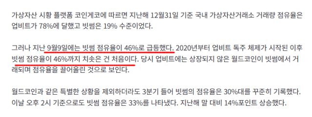근데 기사는 저게 빗썸이 마케팅비 늘려서 그랬다 하지만 내생각엔 그거보단 그냥 업빗 이새기들이 운영을 개좃으로 해서 그런게 아닌가 싶음