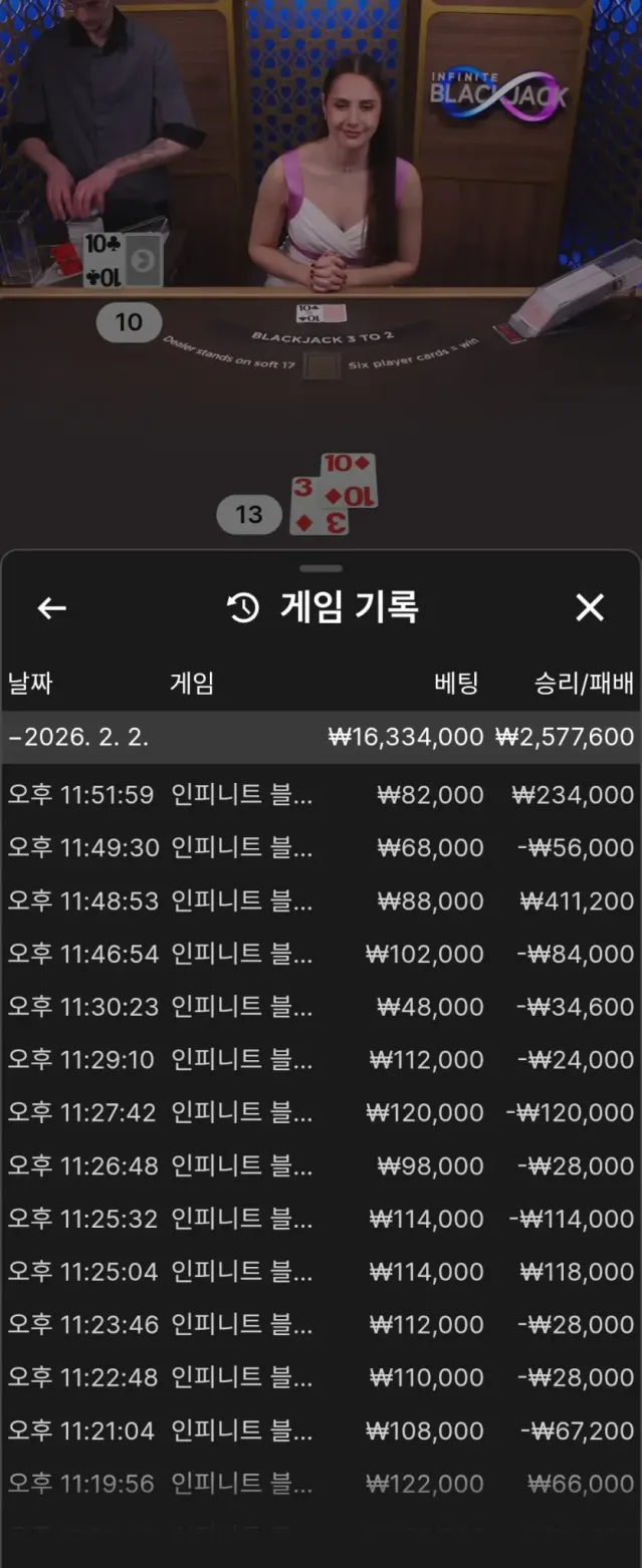 이틀연속 이렇게 먹기는 첨이네요 작성자 정보 스컬트라 작성 작성일 2026.02.03 20:17 컨텐츠 정보 70 조회 1 댓글 목록 본문 어제는 멀린형님이 15000배이상 주더니오는은 블랙젝으로 10만출 300까지 올렸다가 2200000마감하네요 ㄷㄷ 관련자료 댓글 1 혁진공님의 댓글 혁진공 작성일 02.03 20:18 부럽네요 부럽네요 로그인한 회원만 댓글 등록이 가능합니다. 목록