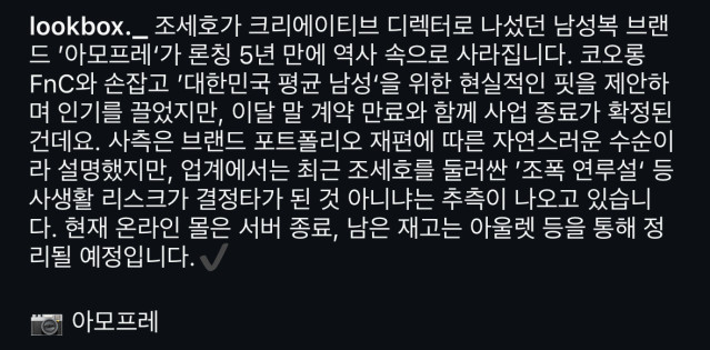 조세호 아모프레 사업 종료
