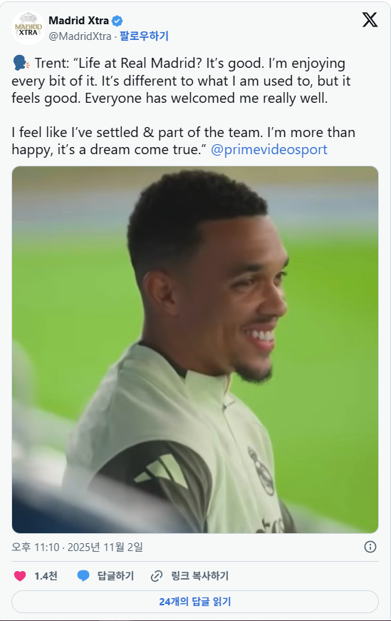 [SNS] 아놀드: 레알에 와서 꿈이 이루어진 것 같다