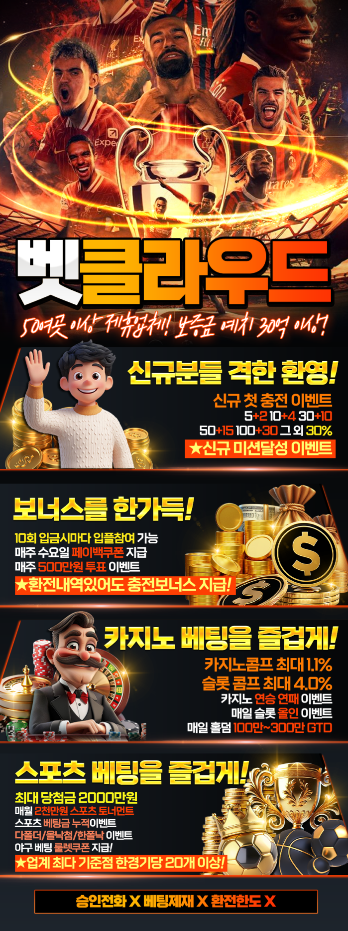 벳클라우드는 승인전화가 없으며, 베팅 무제재를 원칙으로 운영되고 있습니다.